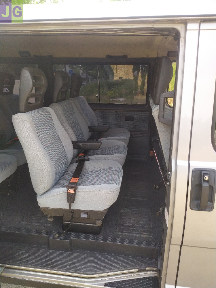 Salon intérieur 9 places confortables et spacieuses - Tissu Gris/bleu (sièges individuels inclinables avec ceintures de sécurité et accoudoirs rabattables) – Non fumeur – Grand coffre.