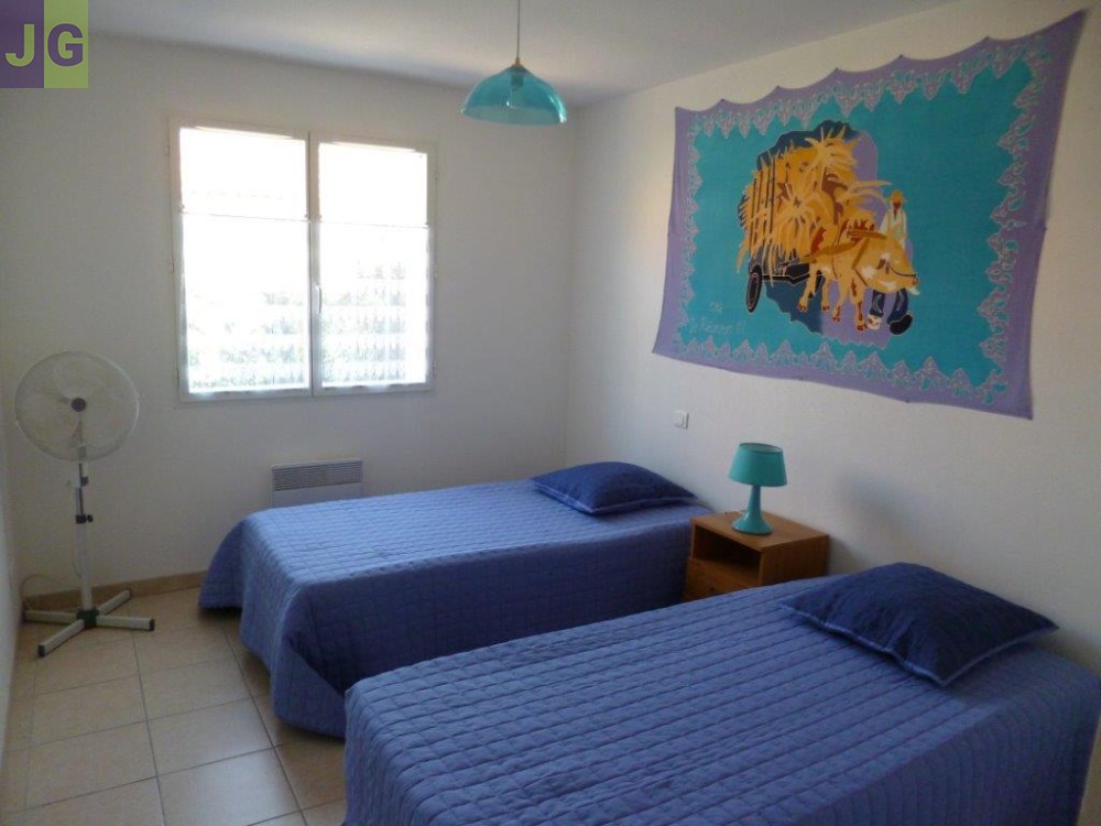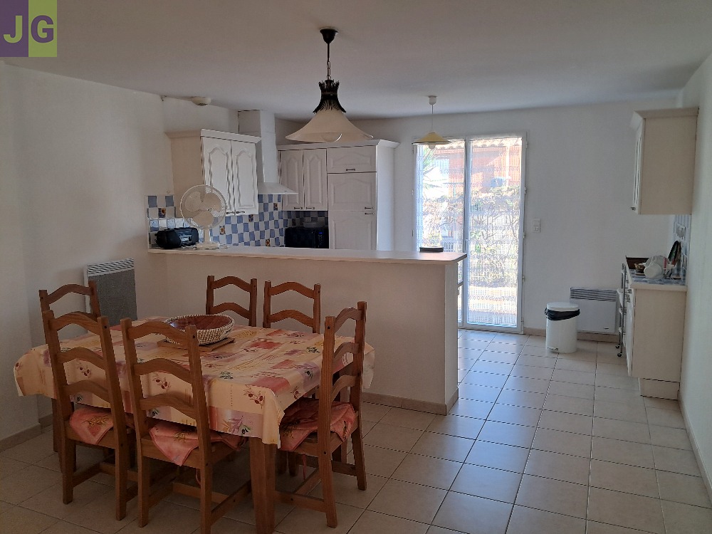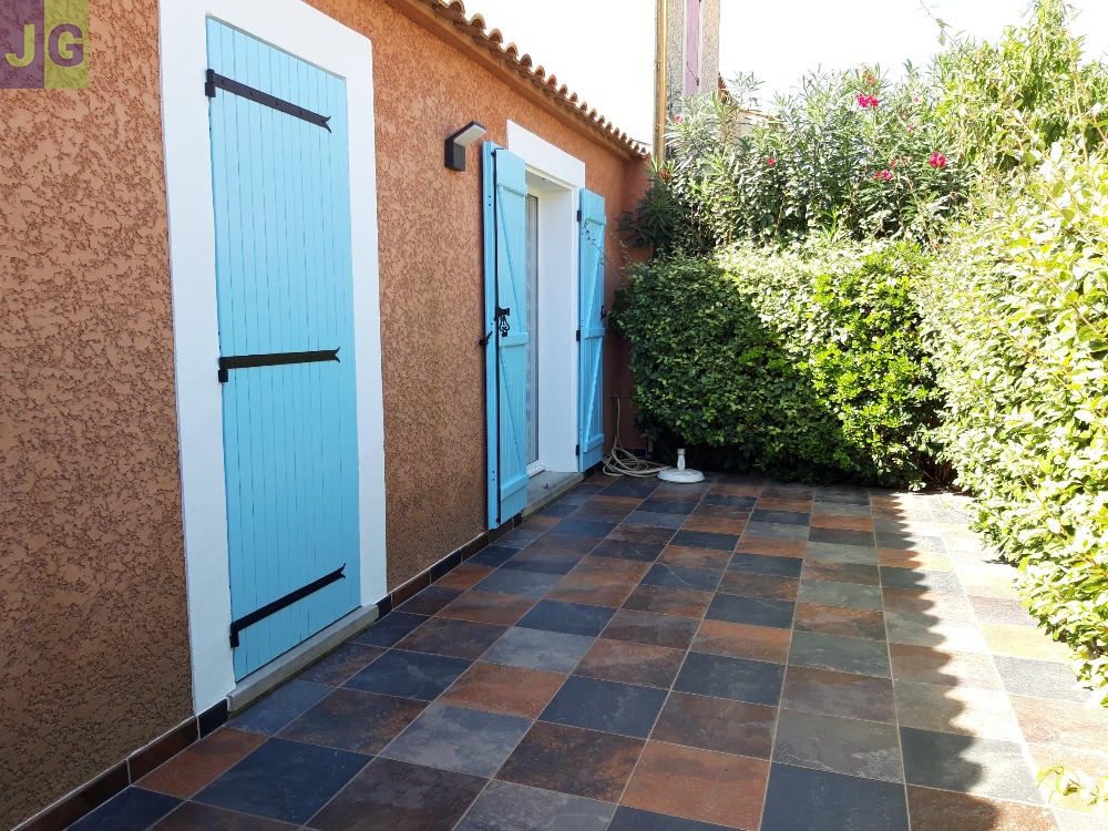 Dans résidence très calme, belle villa type F3 de 76 m² plain-pied construite en 2002 exposée plein sud, avec 2 terrasses carrelées et 2 jardinets, cour-parking privatif carrelé pour automobile - située au pied du massif de la Clape, à environ 400 mètres de la mer et 800 mètres du centre de Narbonne-Plage.