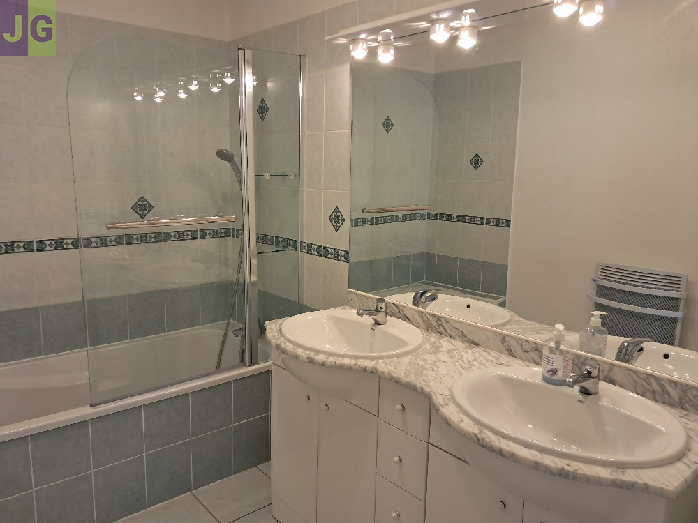 - une salle d'eau de 5 m² avec baignoire et 2 vasques