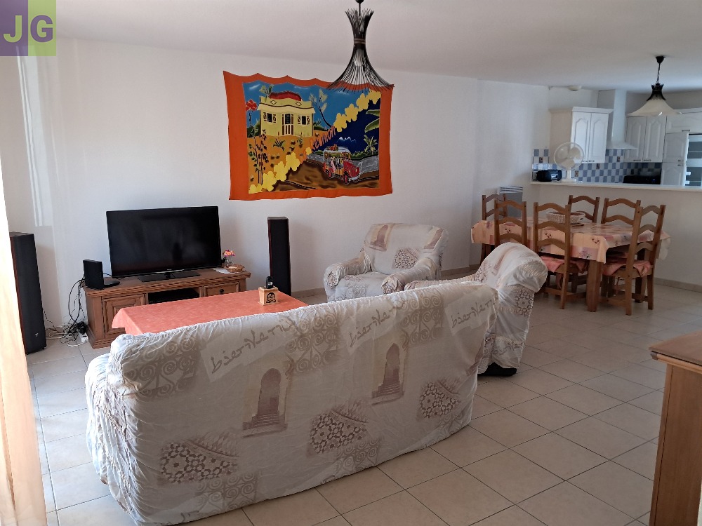 - un grand salon-salle à manger de 31 m² (grande table et 6 chaises, canapé 3 places et 2 fauteuils d’1 place, 1 TV LED 3D 102 cm, chaîne HIFI, ventilateur, buffet, meuble à chaussures)